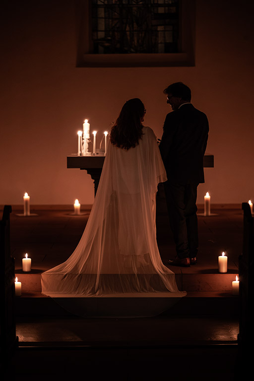 Kerzenlicht-Trauungen sind etwas Besonderes – selten, intim und voller Atmosphäre. Kann eine mit Kerzen erleuchtete Zeremonie überhaupt gut fotografiert werden? Ja, absolut.